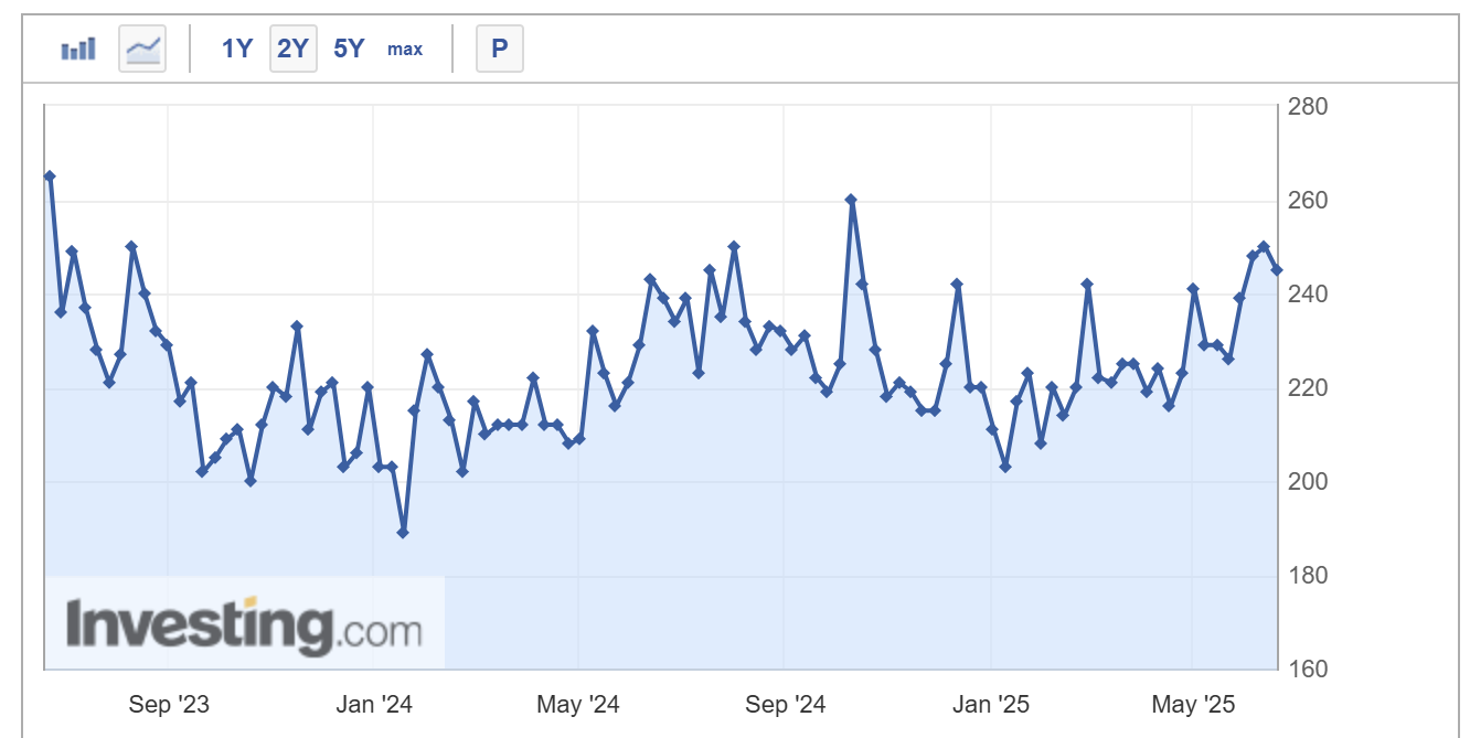 - 5월 말 대비 증가세 뚜렷 (227K → 245K)