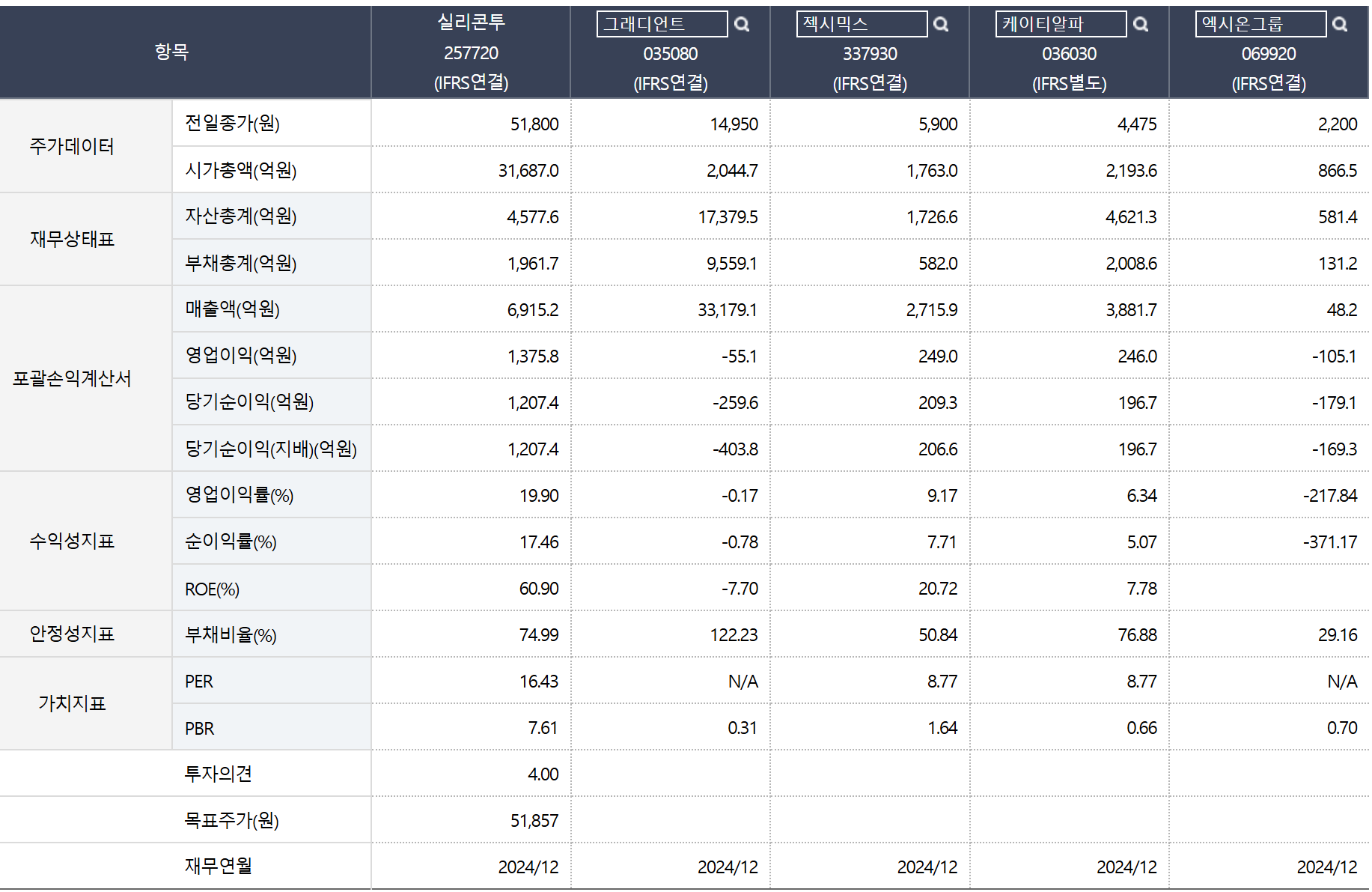 경쟁사 중 젝시믹스와 케이티알파는 안정적인 수익성을 보이고 있으나, 실리콘투에 비해서는 ROE와 매출 규모에서 차이를 보인다. 그래디언트는 매출 규모는 크지만, 영업이익과 순이익에서 적자를 기록하고 있어 수익성 측면에서 도전 과제가 있다.