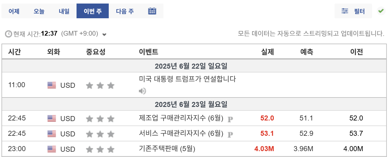 어제 밤에는 (6월 23일) 미국 제조업 PMI, 서비스업 PMI, 기존주택판매 3가지 지표가 발표되었다.
